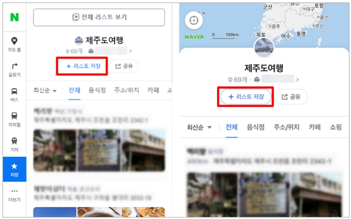 네이버 지도 - 저장