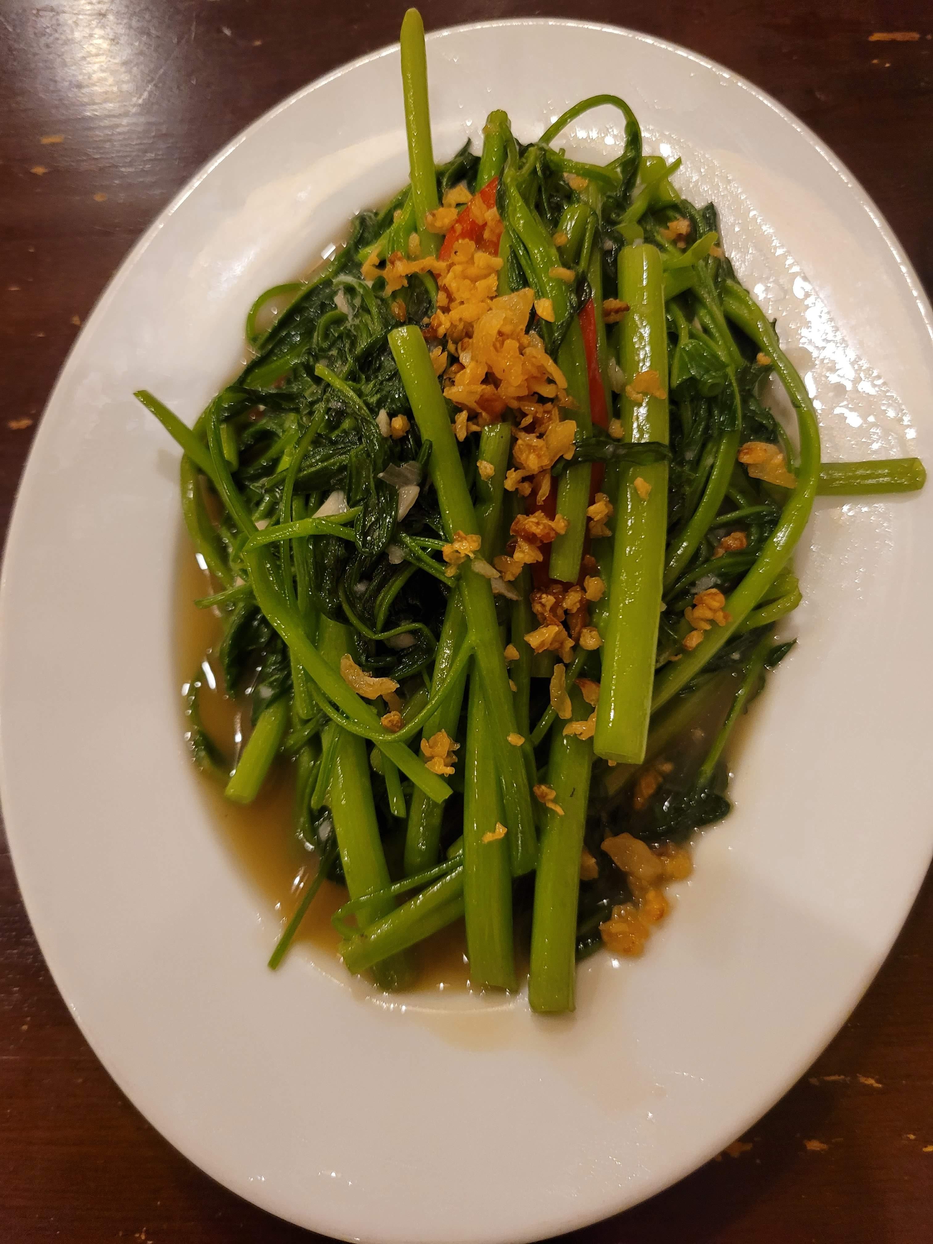 모닝글로리 갈릭볶음 - 모닝글로리 데친요리도 있었는데 저희는 볶음을 좋아해서 갈릭 볶음으로 주문했어요. 굴소스를 살짝 넣어서 볶아주셨는지 고소~한 게 맛 좋았어요.