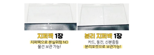 ▶ 제일 뒷장 쪽에는 야무지게 지퍼백 부분과 2단 분리 지퍼백 부분이 있어서 증명사진, 심카드등도 담을 수 있었어요.