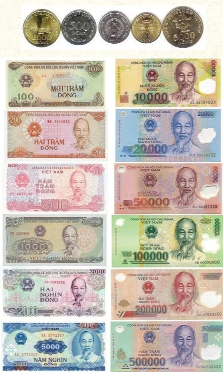 베트남의 화폐는 동이라고 하고, 영어약어는 VND입니다. 동전은 없고 모두 종이 지폐로 이루어져 있어요.